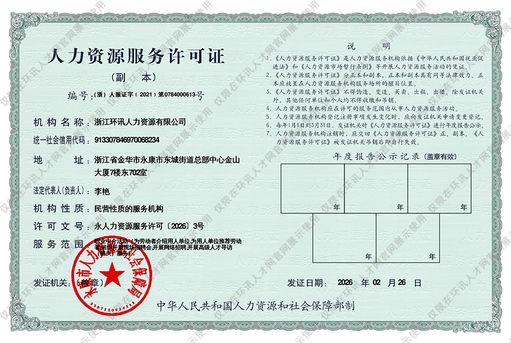 環(huán)訊人才網(wǎng)聲明:未經(jīng)書面授權(quán)嚴禁轉(zhuǎn)載和復制環(huán)訊人才網(wǎng)(www.yk0579.com)的任何招聘信息、人才求職信息及網(wǎng)站內(nèi)容